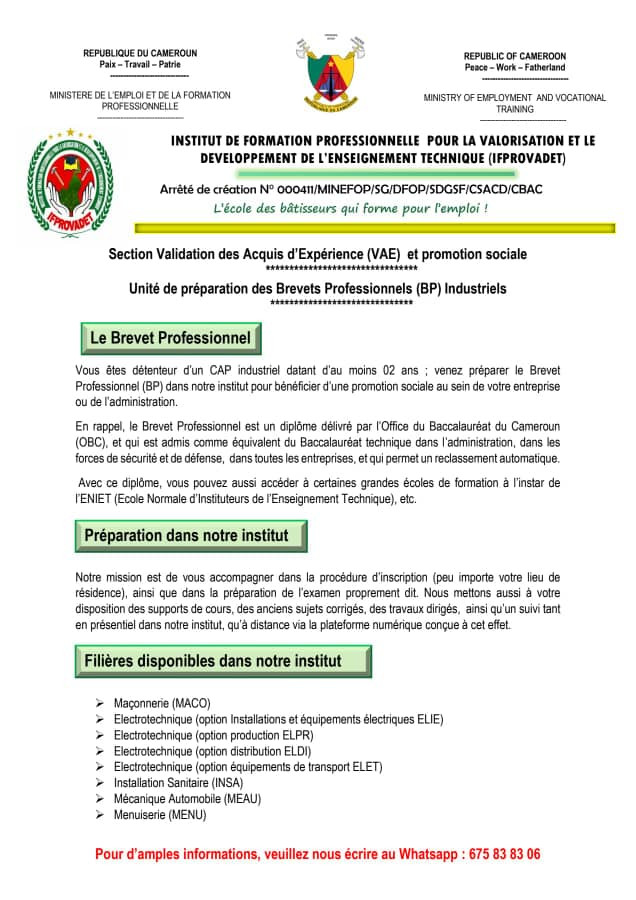Dans cette vidéo introductive, nous vous présentons brièvement le Brevet Professionnel dans le système éducatif camerounais; avec ses différents débouchés tant sur le plan professionnel qu'académique. Merci