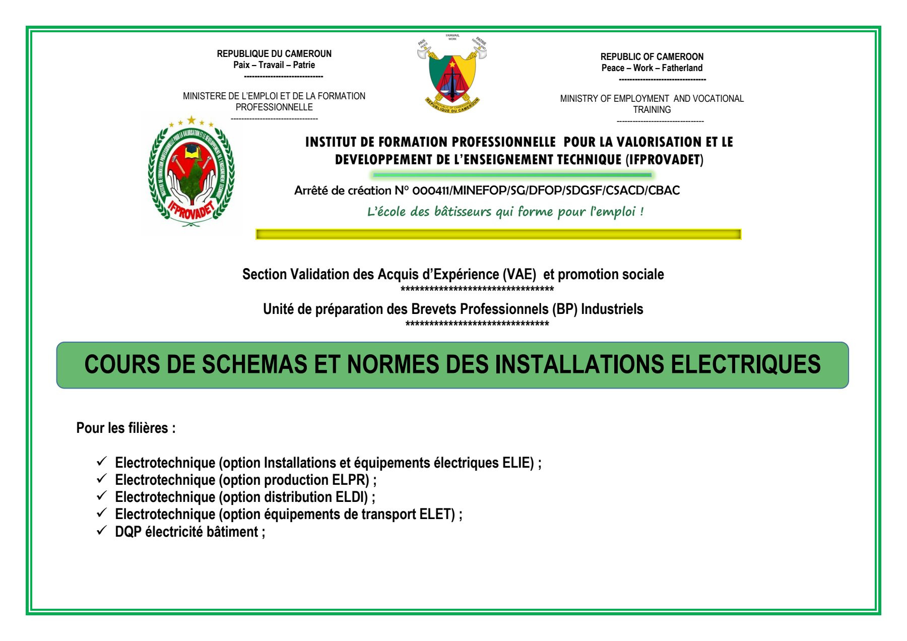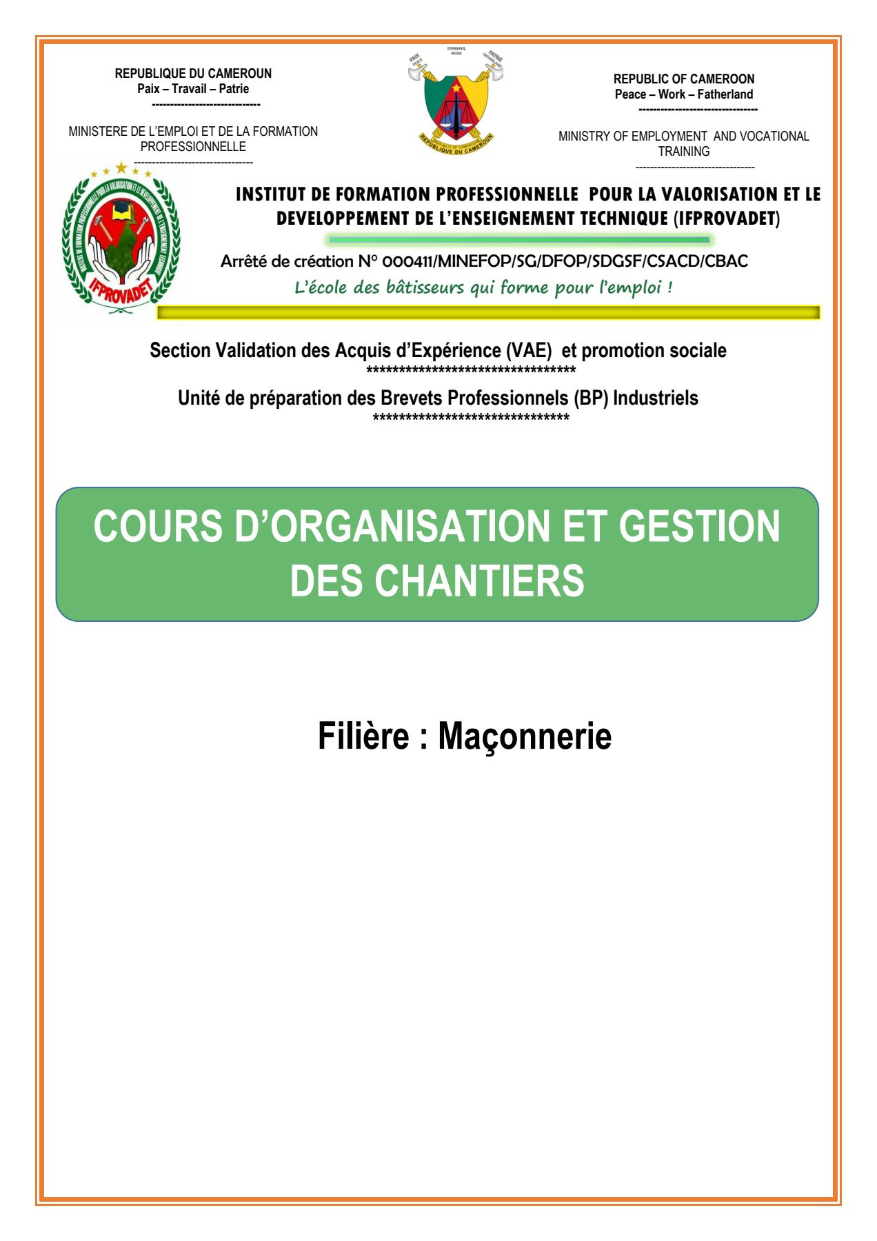 Ce cours est dédié aux étudiants de Deuxième Année Maçonnerie (DQP/CQP).